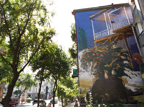 Մ. Սարյանի 'Մեր բակը' պաննոն Թումանյան-Մոսկովյան փողոցների խաչմերուկում