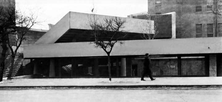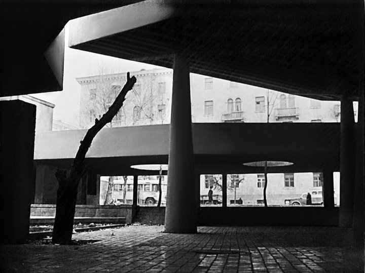 In mid 1960s, during a particularly heightened period of cinema-going in Armenia, a whole slate of new movie theaters were going up all over the city. A very popular mode of film-viewing were the open-air theaters that operated during the summer months in all the major cities of the country. Yerevan to my knowledge had no major structures of this kind and plans were put in place to construct such a hall directly behind the main building of ‘Moscow’ cinema. The job was given to architects Spartak Knteghtsian and Telman Gevorgian. Both of these architects were proponents of high modernism that was taking a strong foothold in Yerevan during those years. Inspired by the works of such prominent Western figureheads as Sol le Wit, Miers van der Rohe, Asplund and others, Knteghtsian and Gevorgian designed a building that was radically, almost indignantly opposed to the predominant paradigmatic notions in Armenian architecture of the time.