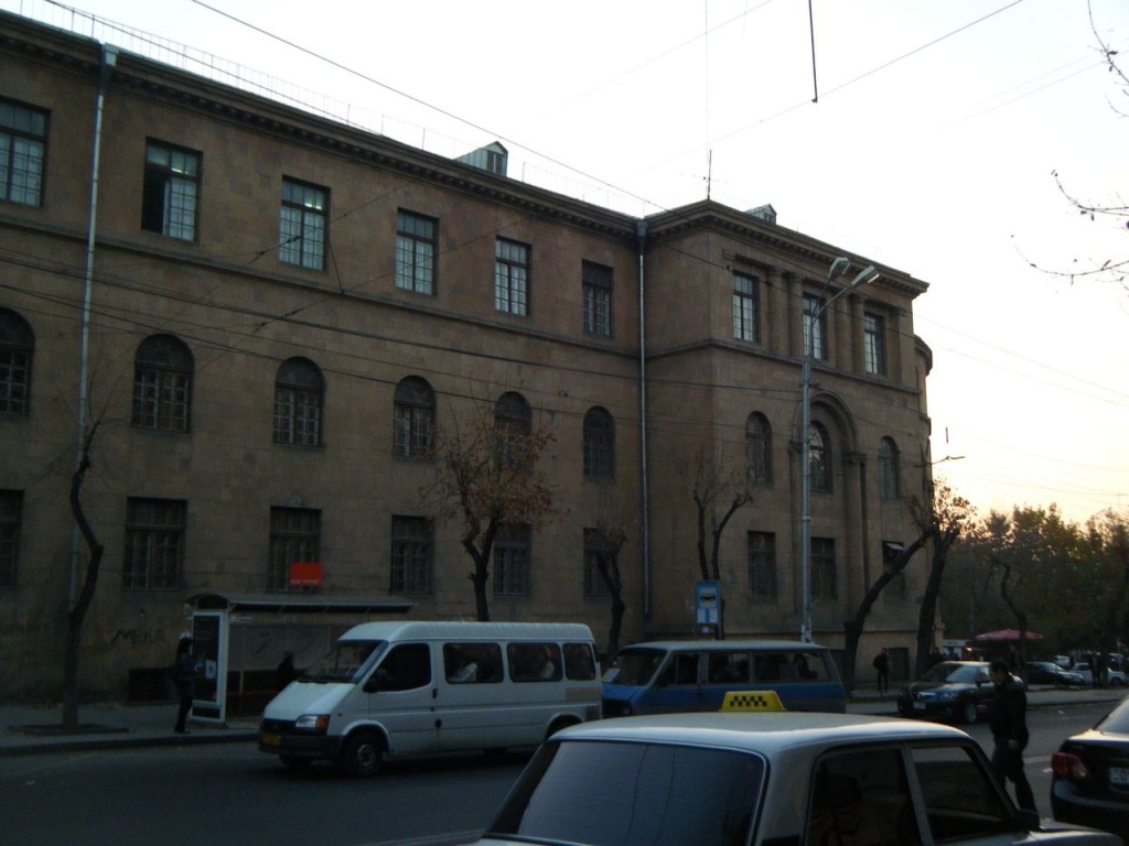 Կառուցվել է 1950-ականներին որպես Սայաթ-Նովայի անվան երաժշտական միջնակարգ դպրոց: Հետագայում ավելացվել է պարի մասնաշենքը Մոսկովյան փողոցի երկայնքով: Ճարտարապետը Գեւորգ (Գեորգի) Թամանյանն է:
